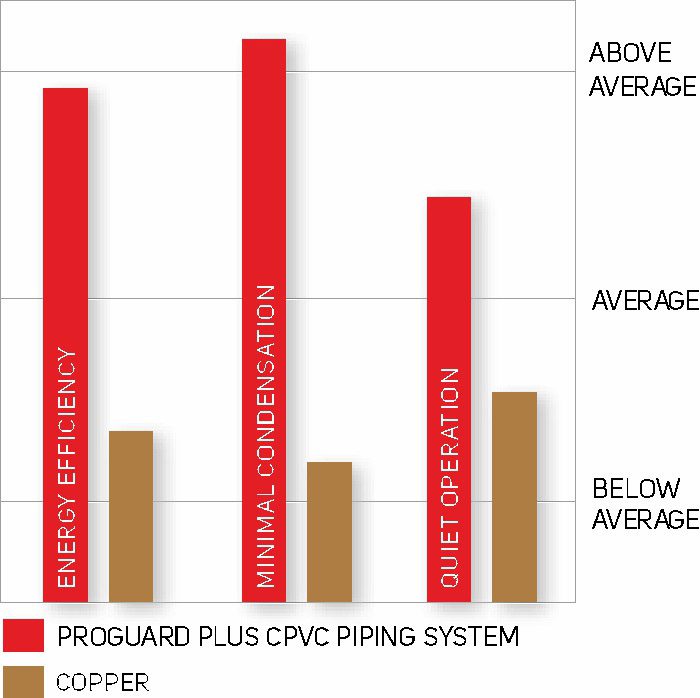 Studies show that copper can leach and contaminate the water supply. ProGuardPlus Pipe & Fittings provide peace of mind with uncompromised water quality in all conditions for potable water service.